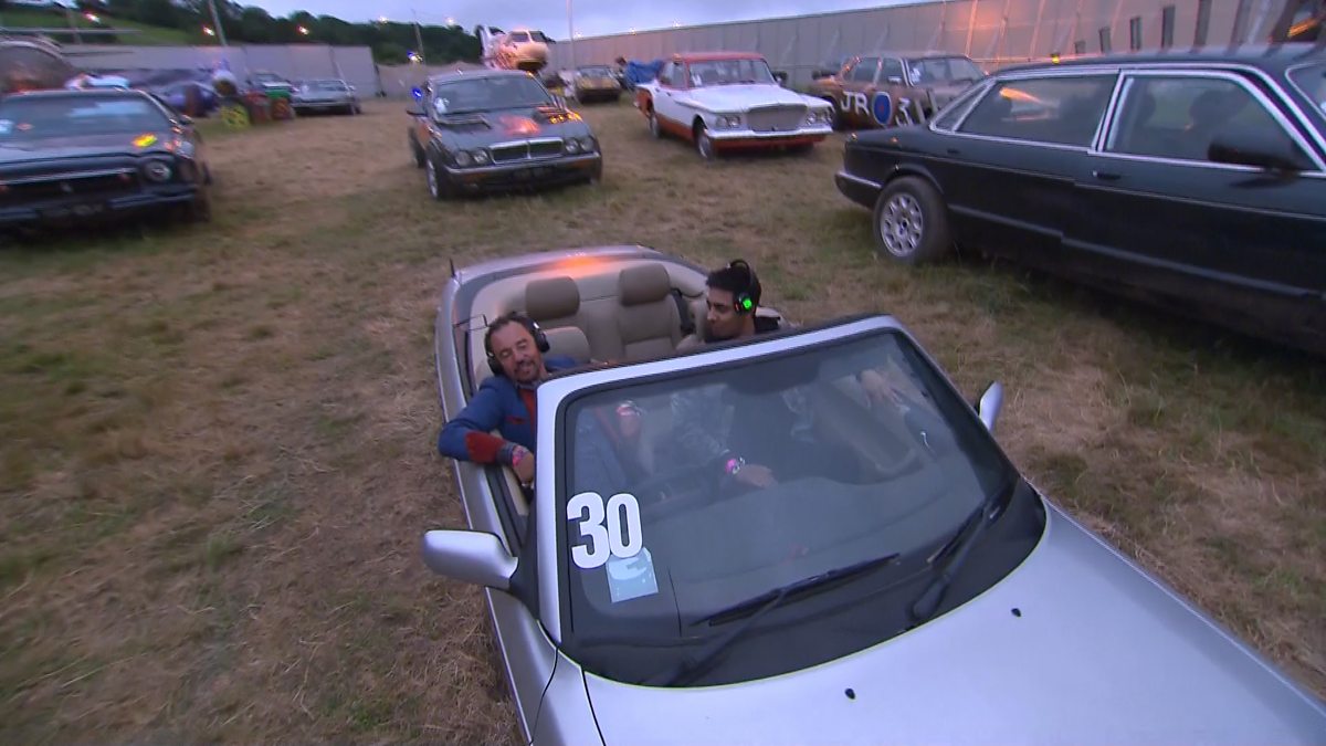 Yasser looks around Cineramageddon - a drive through cinema within the Glastonbury site.