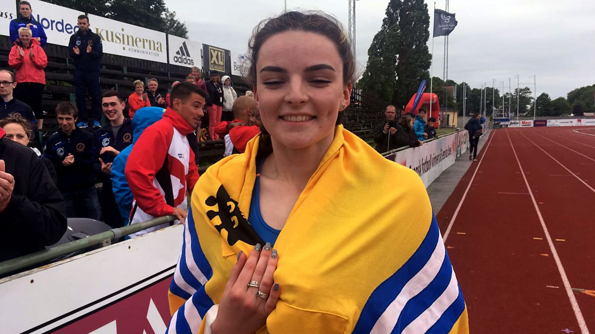 Heather NicFhionghain a fhuair bonn òir san Triple Jump le leum fad 11.06m