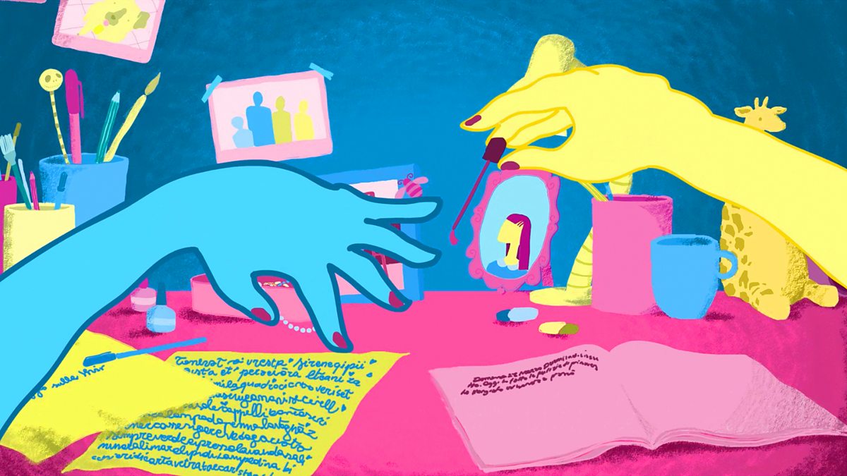 The animators say: We chose this particular piece because we all found on some level that it resonated with us, as the majority of our team have siblings themselves. It was a fun and light-hearted theme to explore, and we enjoyed being experimental in our methods to reflect the playfulness of the scene. We wanted the audience to relate on some level to the two girls, either through their own siblings or the naive ways in which the girls discuss their future.