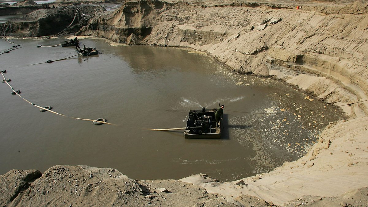 (Photo: Chinese Labourers Mine Sand On The Outskirts Of Beijing. Credit: Getty Images)