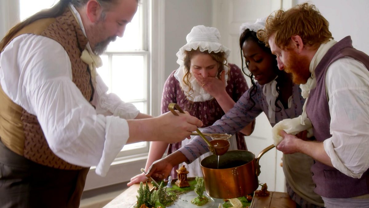 Four modern day confectioners struggle to pull off a show stopping edible landscape as they recreate a Georgian dessert course in Bath.