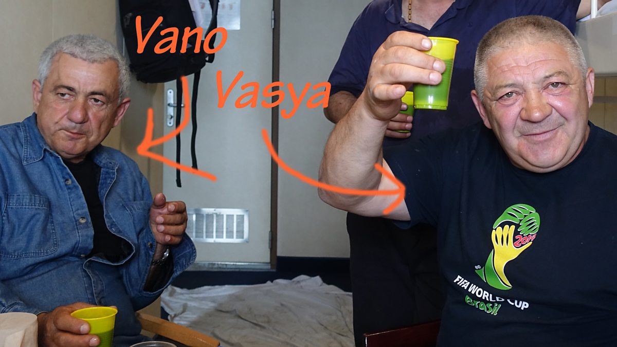 Picture: Vano from Georgia and Vasya from Ukraine - two truckers from a Black Sea ferry Credit: BBC
