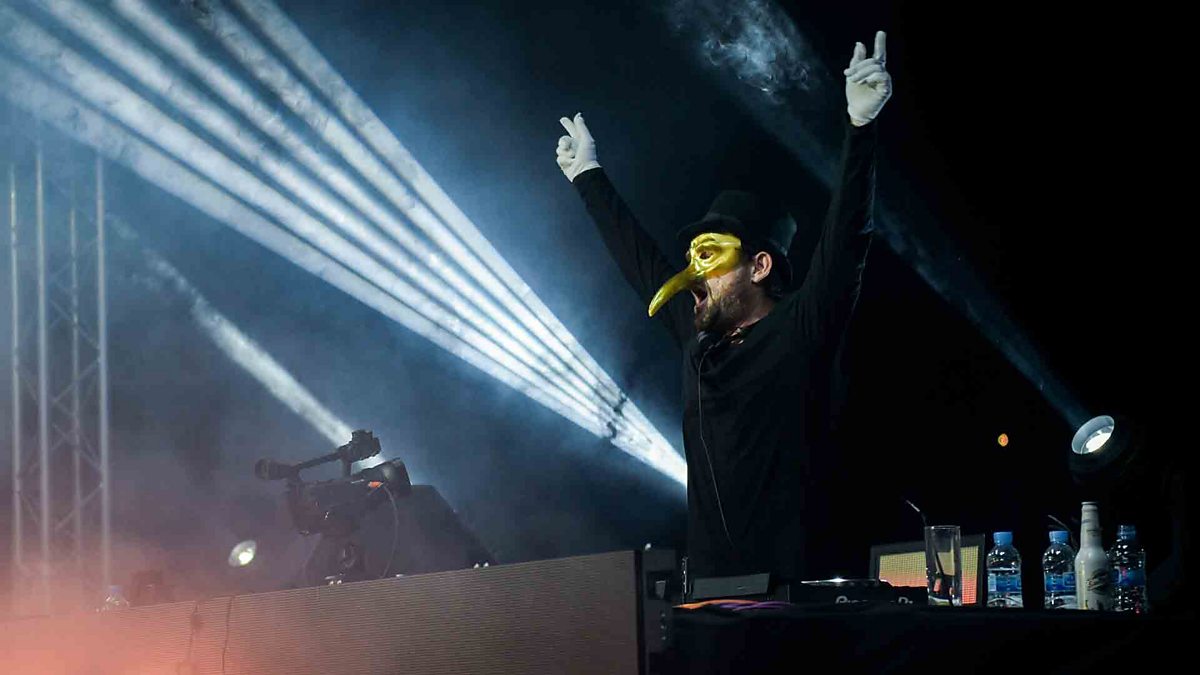 Claptone performs at Café Mambo for Radio 1 in Ibiza 2017.