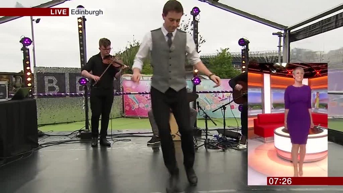 Steph McGovern shows off her Irish Dancing skills from the BBC Breakfast studio whilst five times World Champion David Geaney performs live at the BBC's Edinburgh Festivals venue.
