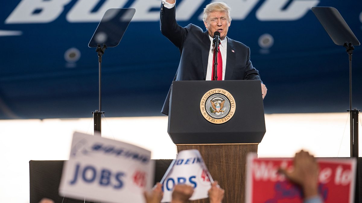 (Photo: U.S. President Donald Trump addresses a crowd during the debut event for the Dreamliner 787-10 at Boeing's South Carolina facilities in North Charleston, South Carolina. Credit: Getty Images)