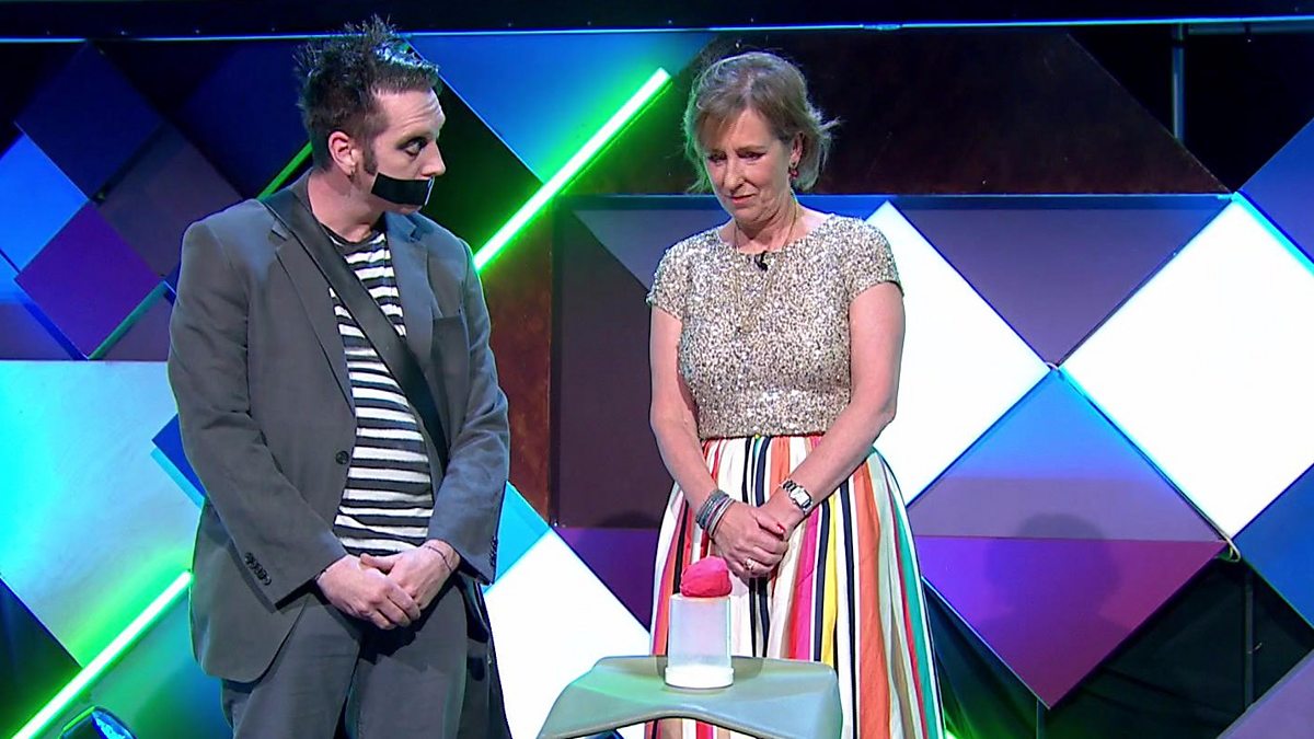 Kirsty Wark and Tape Face take to the stage re-enact a famous film scene.