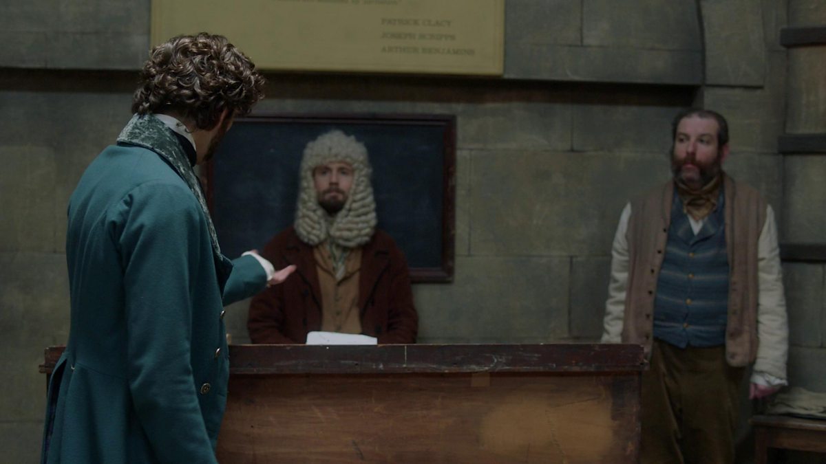 William has a patient, Harold, with extreme monomania – he seems sane other than his fervent belief that he will be seized by spies at any moment and put on trial for being a French noble. With John, Robert and Caroline’s help, William concocts a daring plan to cure Harold of his delusion by staging the trial and ‘acquitting’ him.