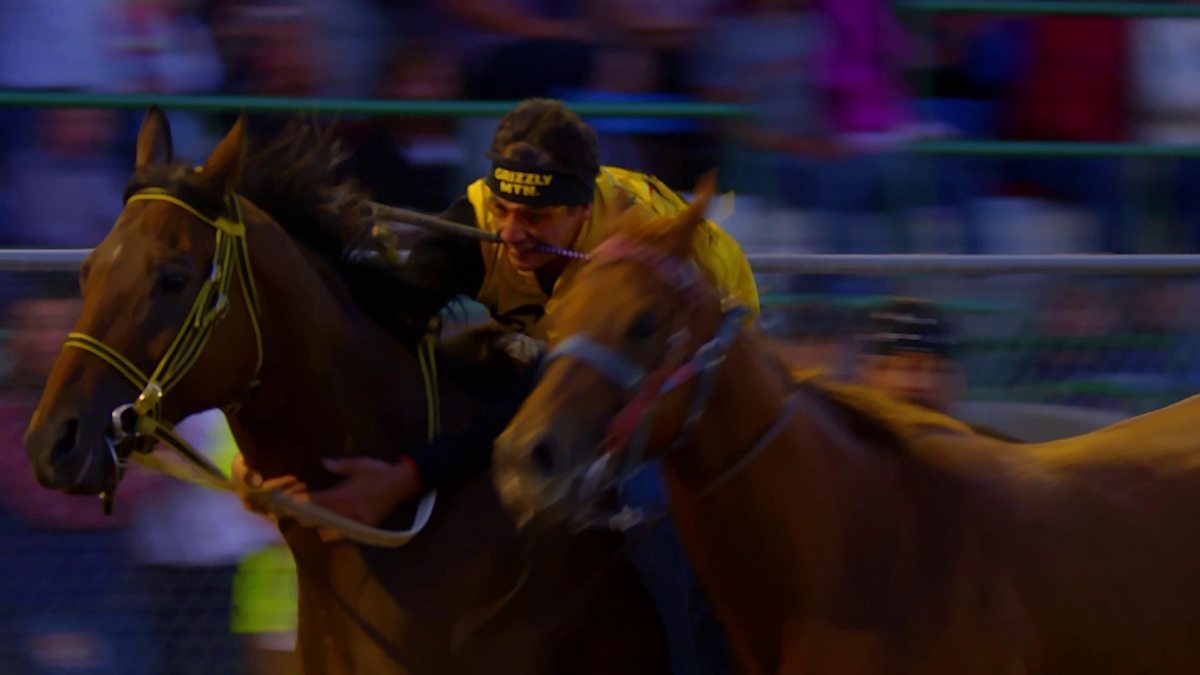 Oliver from the Grizzly Mountain relay team goes into 'warrior mode'.