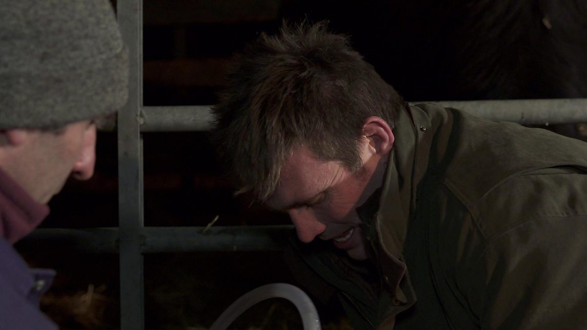 Stevie is left with no option other than to feed colostrum to a new-born buffalo calf via a tube down its throat.