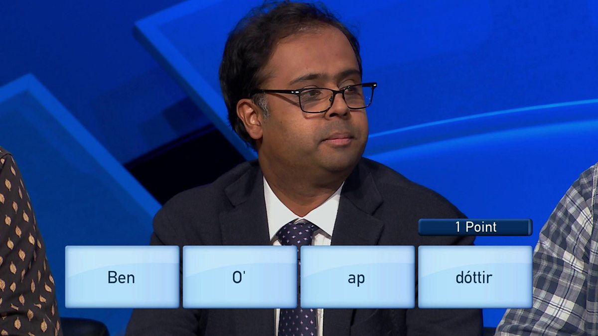 A team of solo applicants and three teachers try to work out the connection between 'Ben', 'O', 'ap' and 'dottir'. But what's it got to do with Huw's friends?