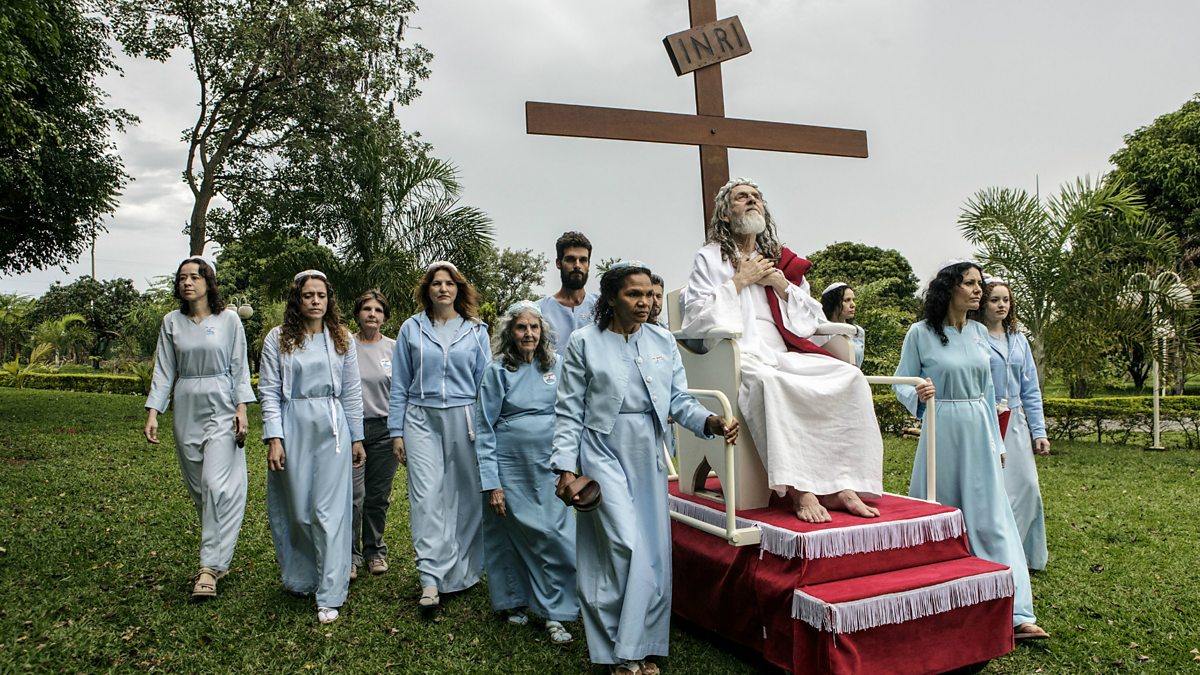 (IMAGE: INRI Cristo is wheeled around their compound on a rolling pedestal. INRI are the initials that Pontius Pilate had written on top of Jesus' cross, meaning Jesus Christ, King of the Jews. Brazil, 2014, taken from 'The Last Testament' published by Aperture / GOST - Copyright and Credit: Jonas Bendiksen / Magnum Photos)