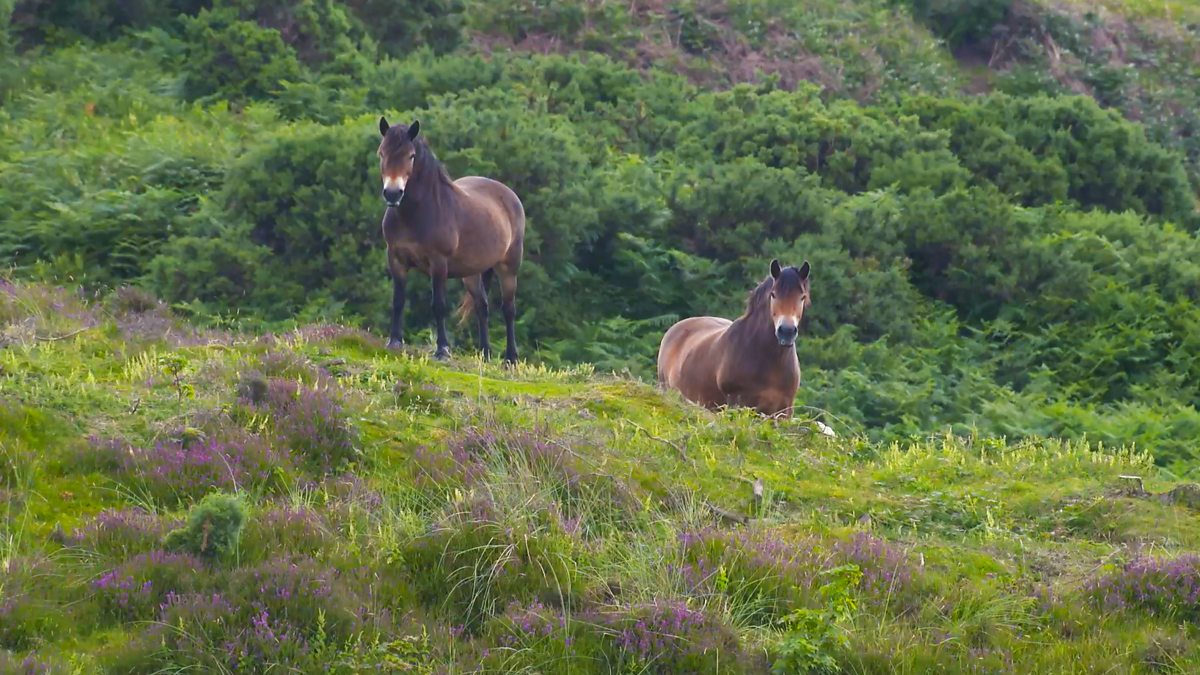 Presenter Ruth helps to round up wild horses on Murlough Nature Reserve.