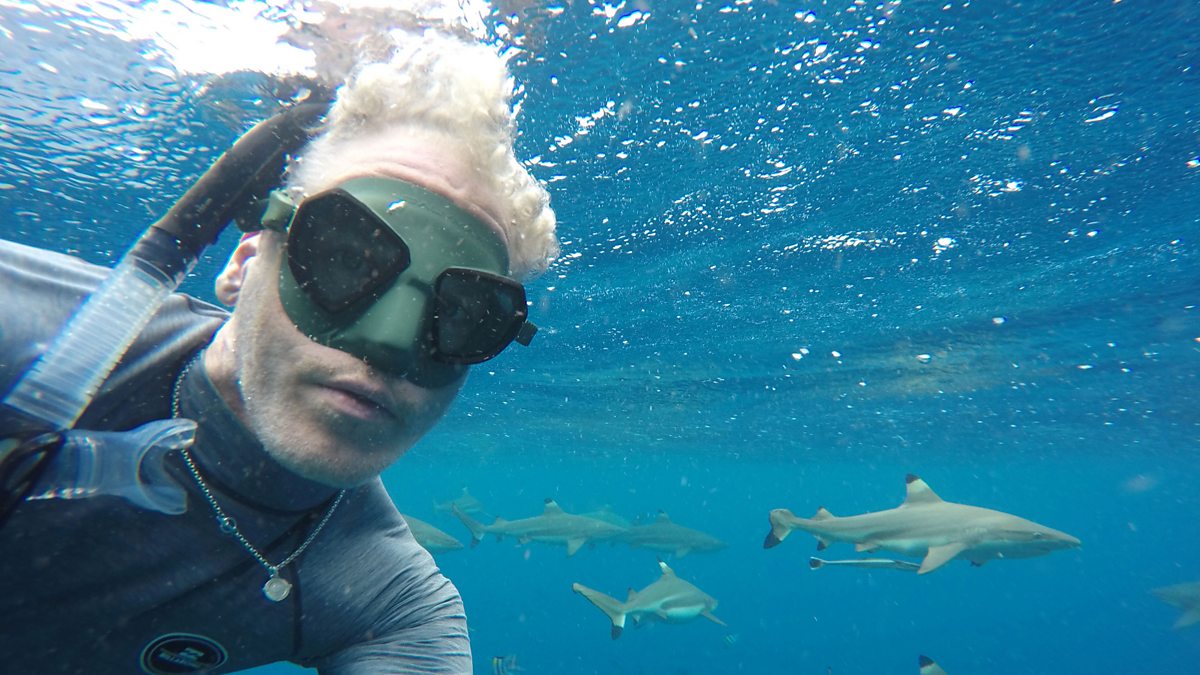 Gordon joins a family on a tropical island to learn how to survive swimming with sharks.