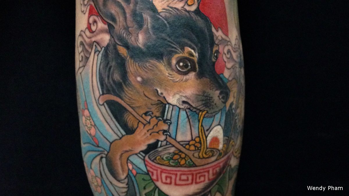 Wendy Pham is an Australian tattoo artist, who runs her own tattoo studio in Berlin called Taiko Gallery. She is heavily influenced by the Japanese cartoons she watched as a child - you can expect to see animals wearing kimonos and eating bowls of noodles in her fun and colourful designs. In fact, on social media she's known as 'wen ramen.' Here she explains what inspires her.