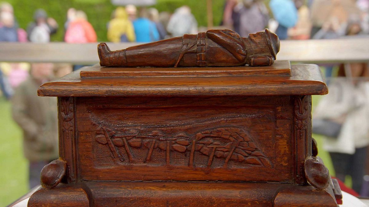 Fiona is moved by a World War One commemorative piece, carved by an injured soldier with wood from the trenches.