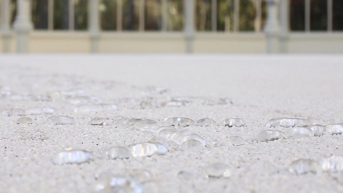 Colombian sculptor Doris Salcedo’s latest work marks the lives of those who died in perilous sea crossings seeking a better life in Europe. Names of the dead are written in specially crafted stone and through them appear water droplets that merge to reveal the names of other victims. The effect is that the stone appears to weep the names of those who died.