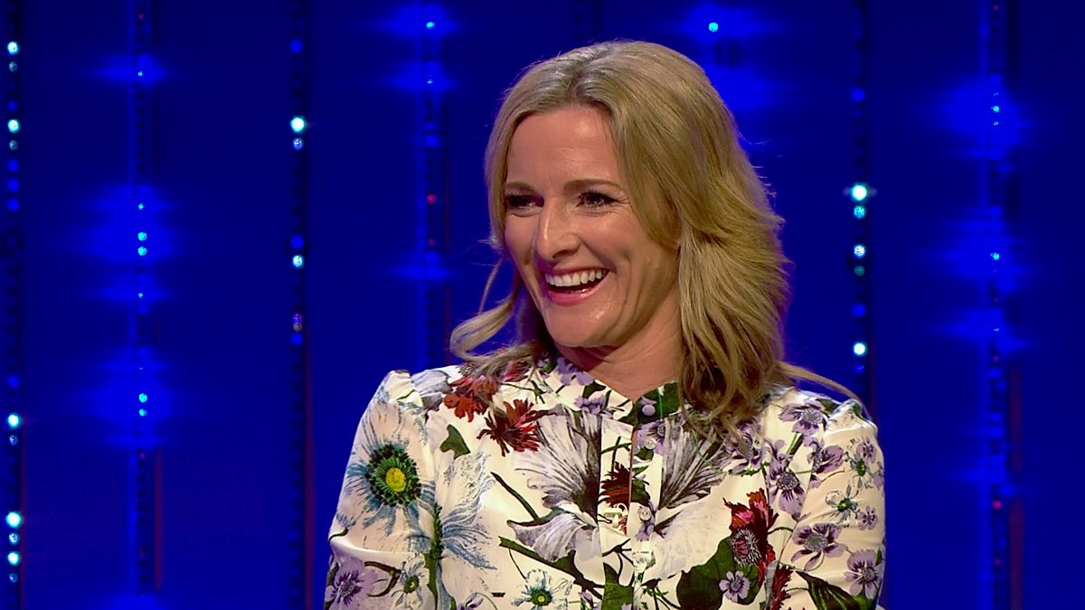 Gabby Logan jokes with Sue & the panel about inventing a happy horn