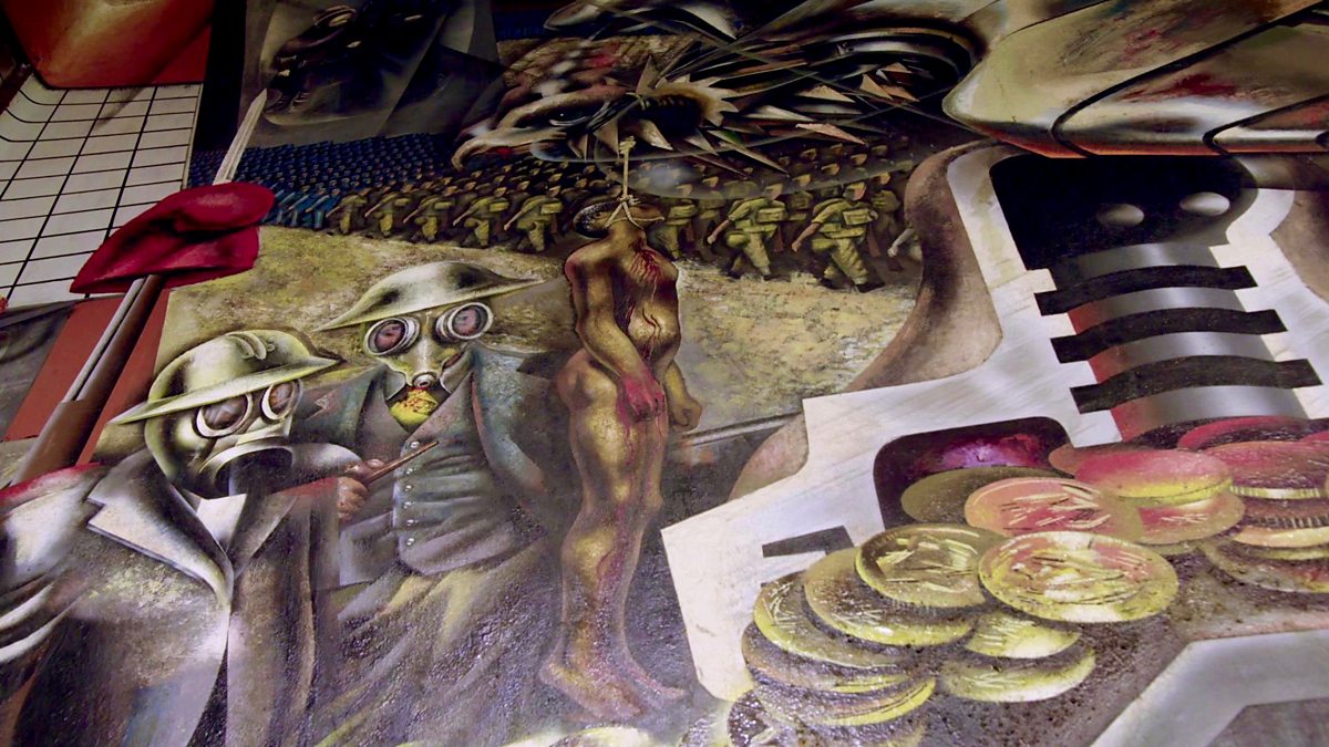 A revolutionary mural by David Siqueiros, painted on his return from fighting in the Spanish Civil War