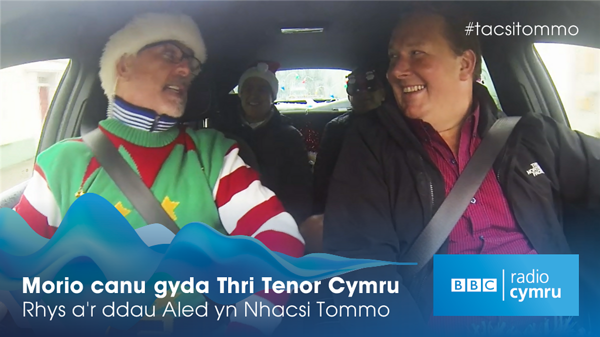 Rhys Meirion, Aled Hall ac Aled Wyn Davies yw gwesteion arbennig Tacsi Tommo