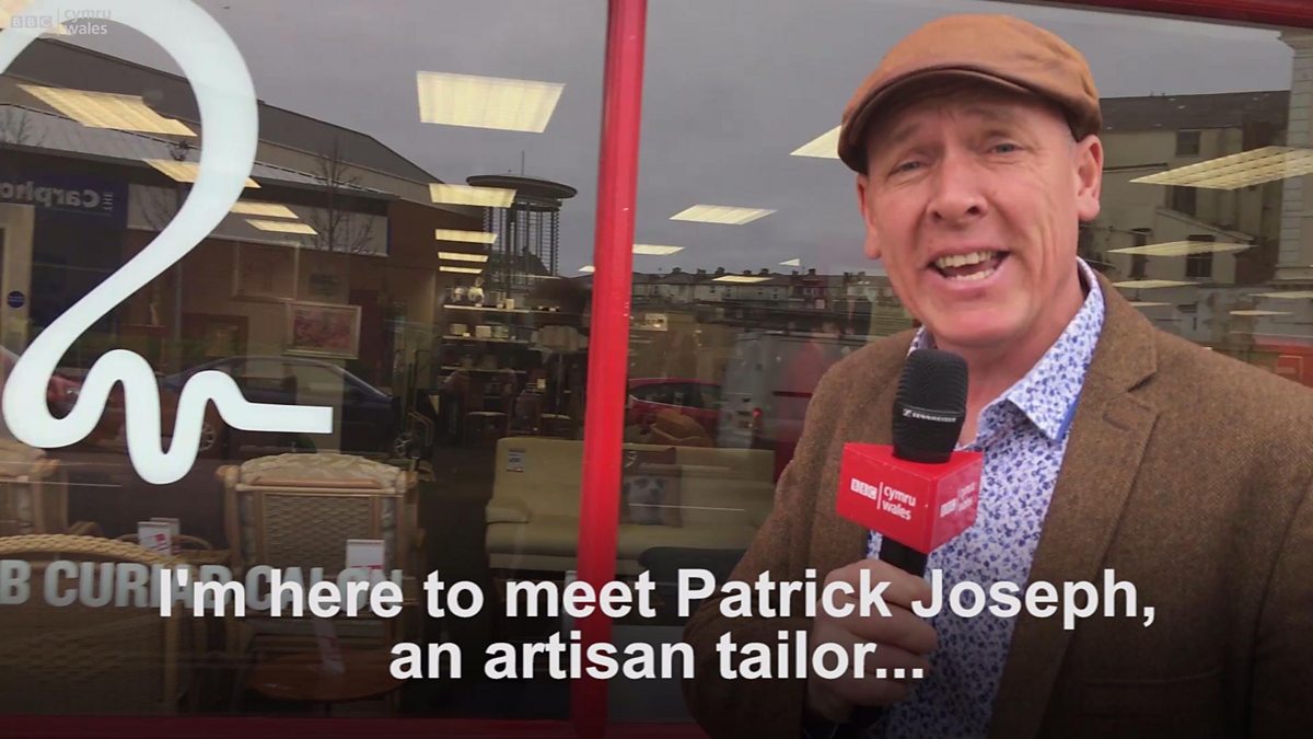 Gareth Wyn Jones gets styled by artist and tailor Patrick Joseph in Llandudno.