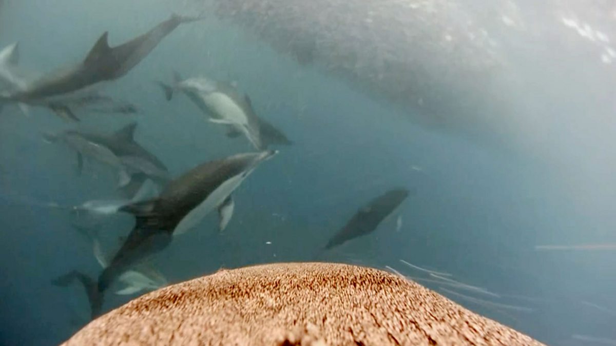 On-board cameras show how Australian fur seals take advantage of the fish-herding behaviour of dolphins to get an easy meal.