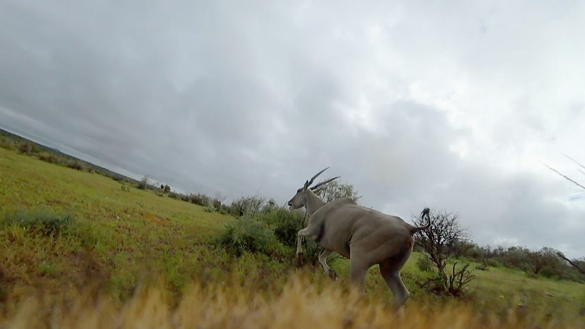 Two orphan cheetahs, one wearing a head-mounted camera, are learning to hunt in the Namibian bush. Together, they try to chase down an eland, the largest of Africa's antelopes.