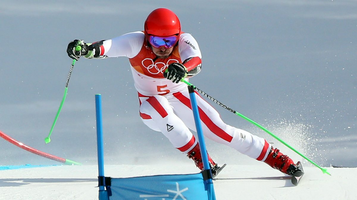 The Austrian skier was hoping for his second gold of the Games as the men's super g hit the slopes.