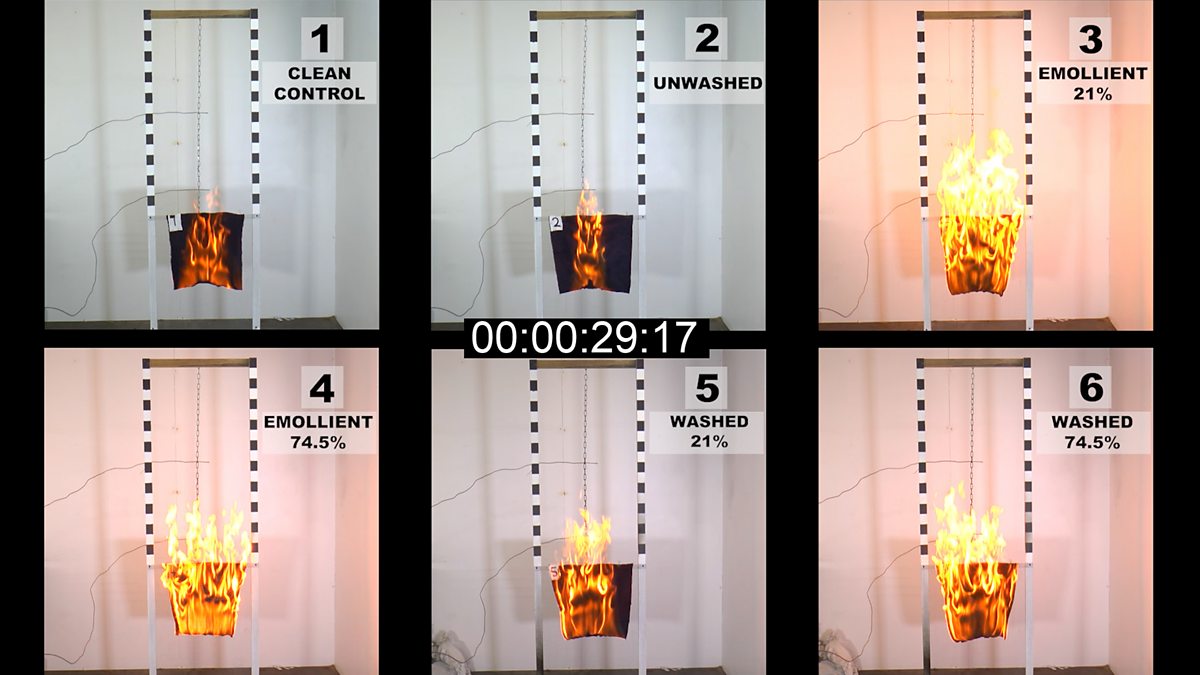 Fire tests show dangers of paraffin based creams soaked into fabric