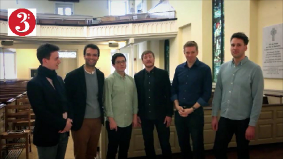 The King's Singers introduce us to an extract from Abendlied by Rheinberger. They sing it twice – the first time with heavy vibrato, the second time without.