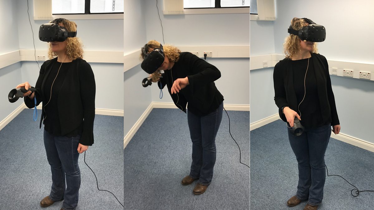 Luke Reid gives Pennie Latin a VR tour of the inner ear at University of Dundee