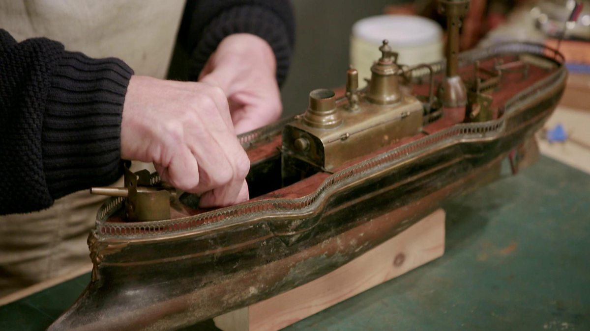 Horologist Steven Fletcher painstakingly mends all the components of a toy steam battleship to get it working again after years being unused.