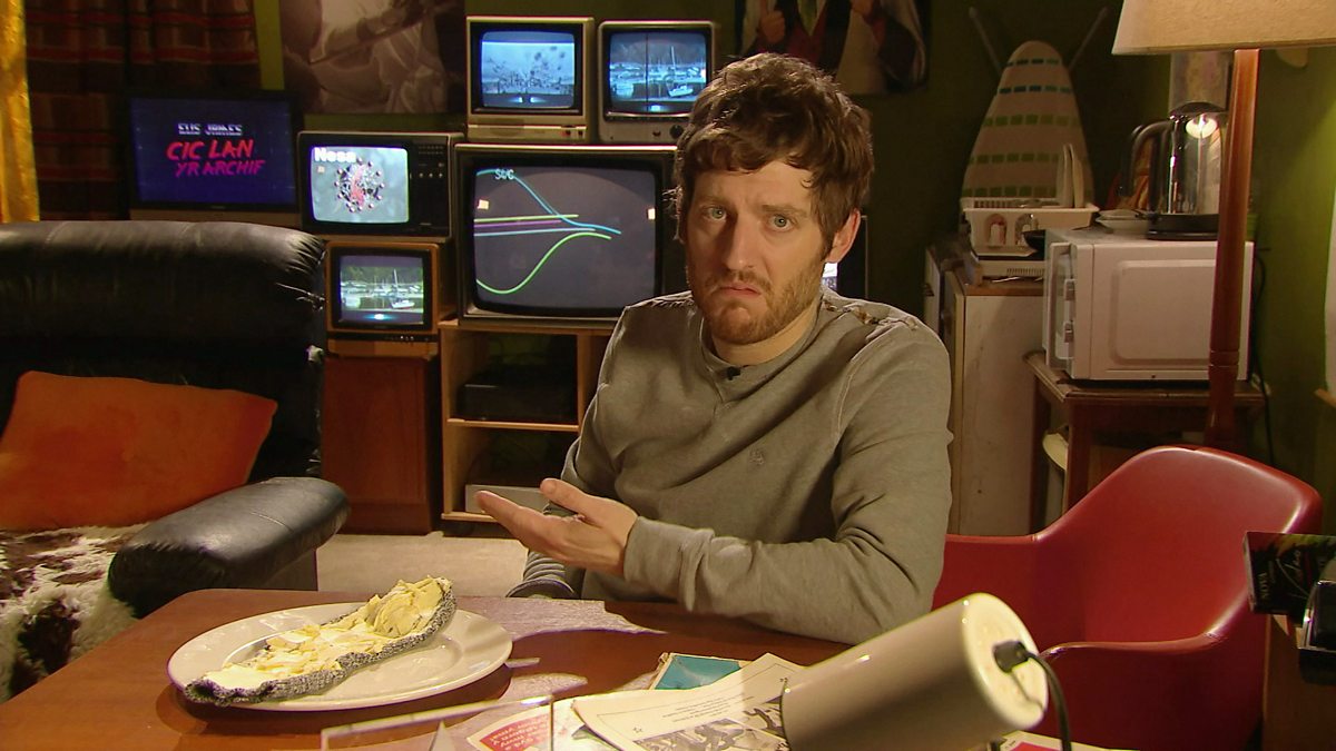 Cyfres gomedi. Y digrifwr Elis James sy'n edrych 'nôl trwy hanner canrif o archif ffilm a theledu Cymru. Comedy series. Elis James looks through fifty years of Welsh film and TV archive.