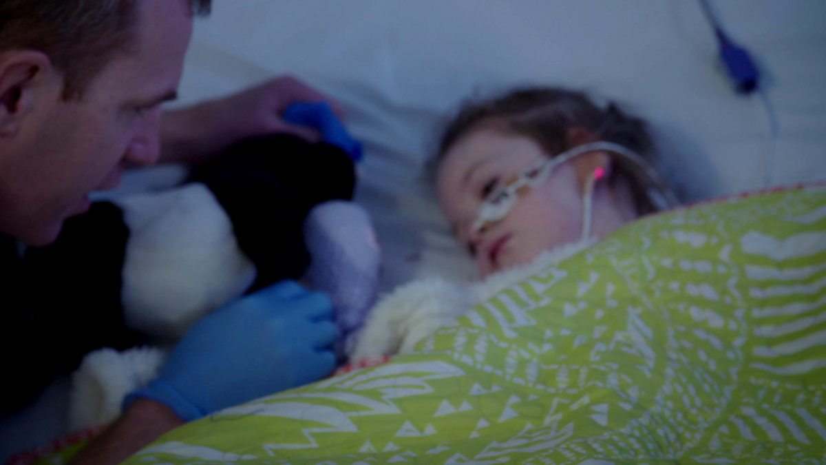 Esme has been placed in a medically-induced coma after suffering from septic shock. She is woken up to find out whether there has been any damage to her brain.