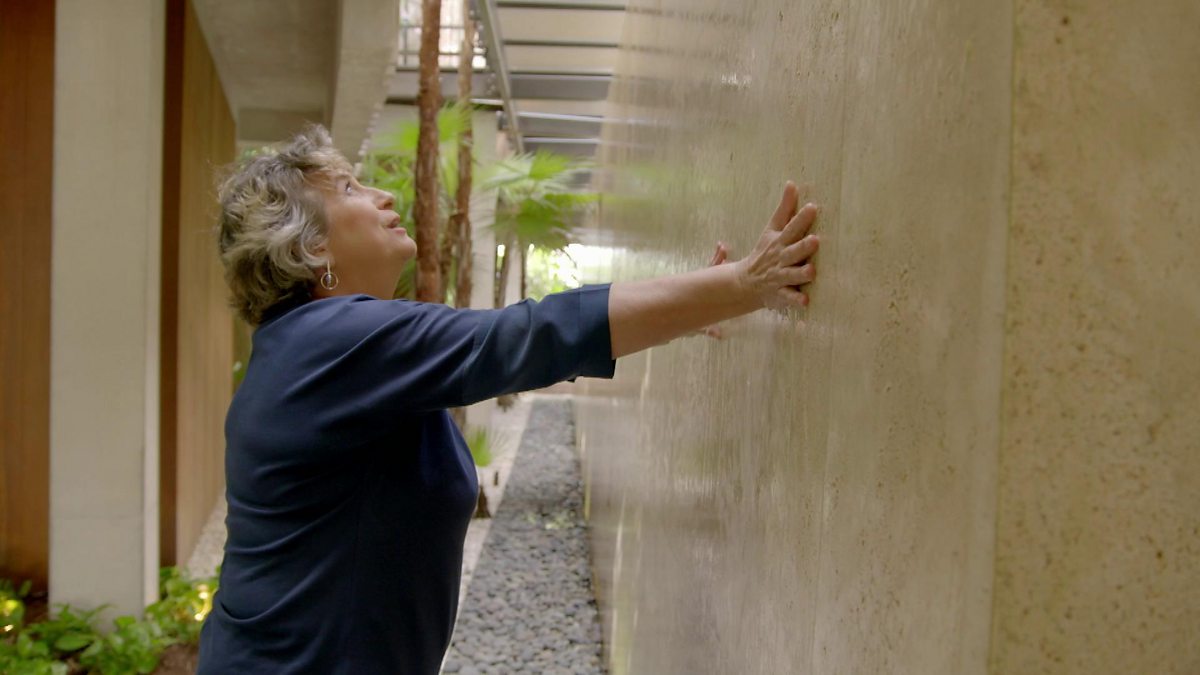 Piers discovers the enticing space of the inner courtyard at Prairie Residence, whilst Caroline is enchanted by the wall of water below.