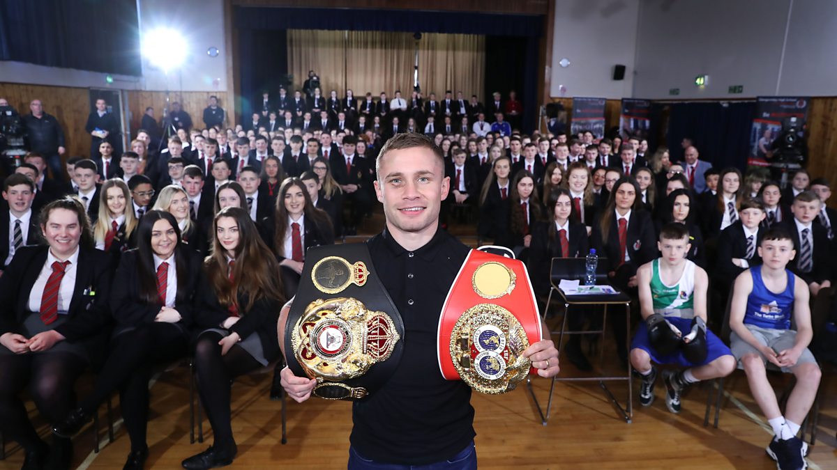 Frampton returns to his old school to share how he made it to the top of the boxing world.