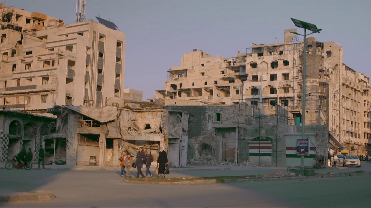 Don MCullin takes photographs of the devastation in the Old City of Homs which was heavily bombed during the war in Syria.