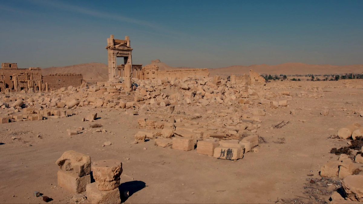 Don McCullin and Dan Cruickshank finally arrive at the remains of the Temple of Bel to see for themselves for the first time what has happened after IS blew it up.