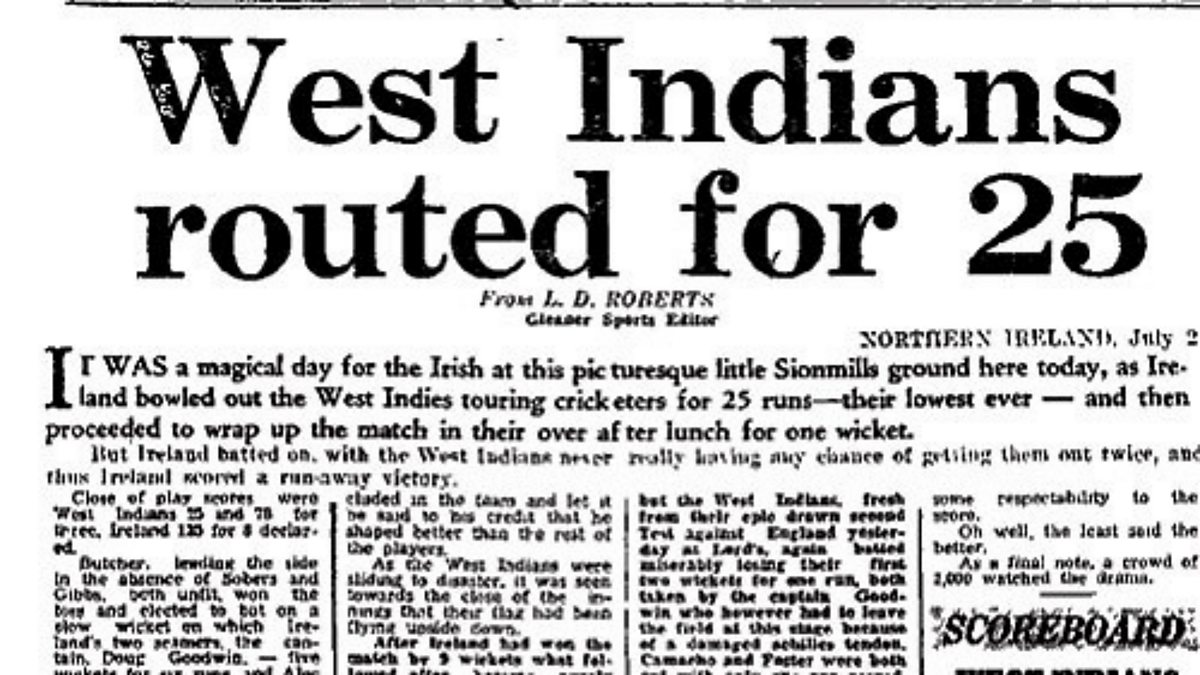 Ireland pulled off one of the biggest shocks in 20th century cricket by bowling the West Indies out for just 25 runs back in July 1969!