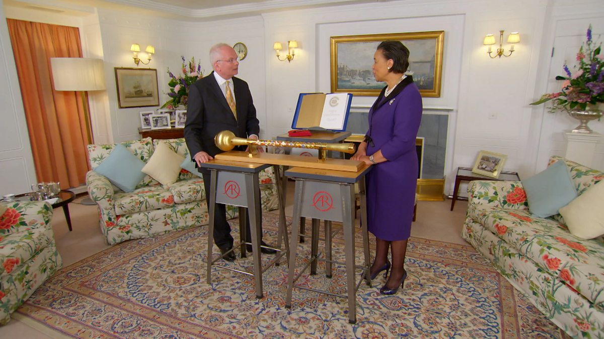 The Commonwealth mace is used in the presence of The Queen representing the Head of the Commonwealth and is adorned with enamelled flags of each member state.