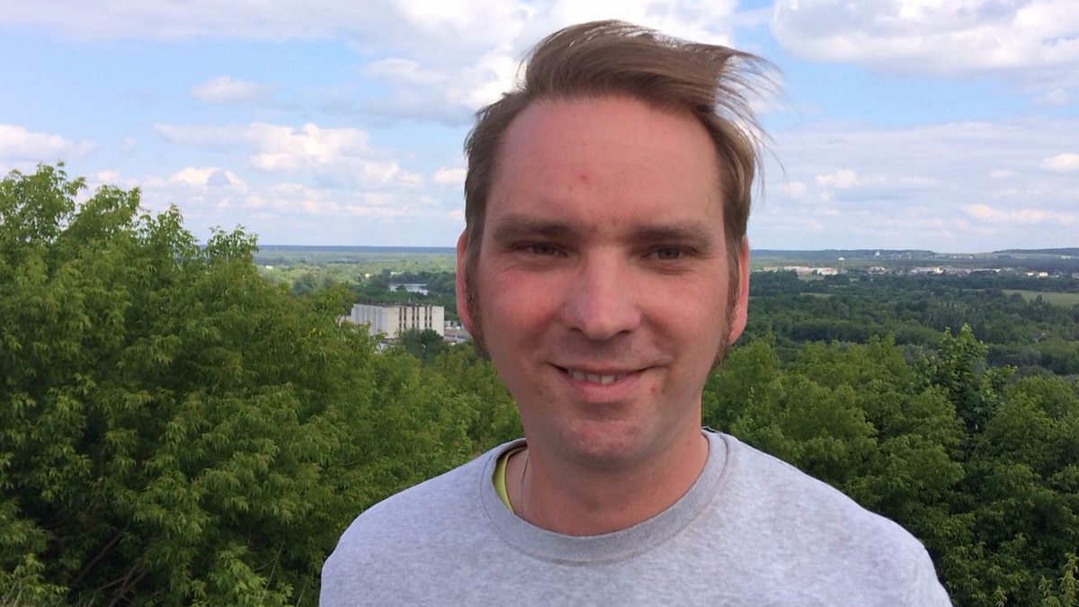 (Photo: Russian tour guide Sergei Sedov in the city of Vladimir. Credit: Mike Innes/BBC)