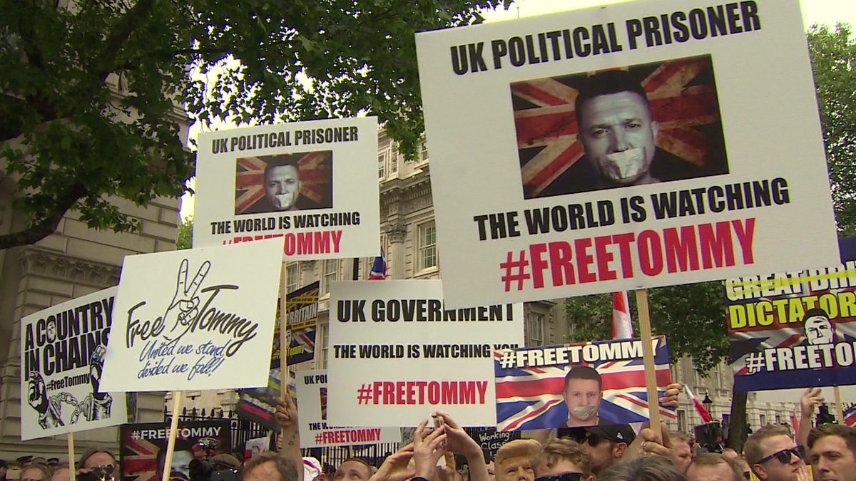 Tommy Robinson was sent to prison for contempt of court last month after live streaming on social media outside an ongoing grooming trial in Leeds.