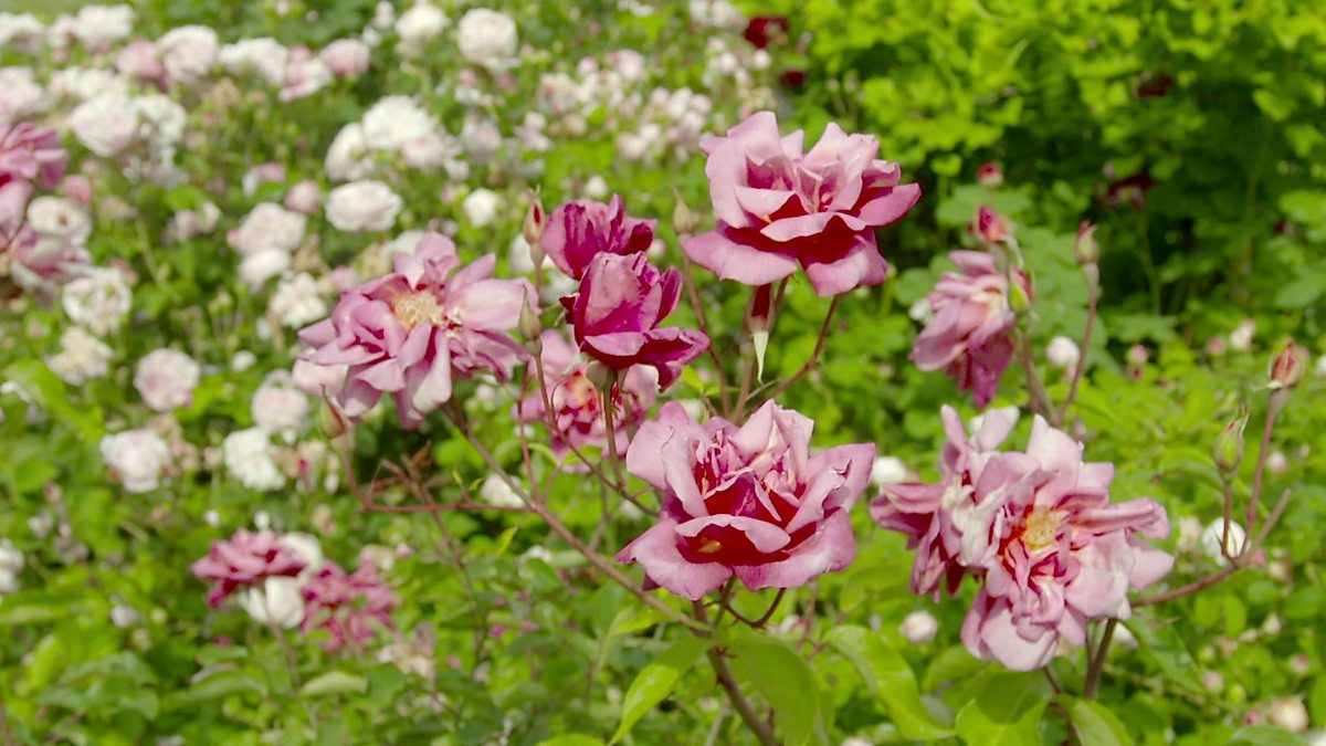 Ian Limmard from Peter Beales Roses explains their rose exhibit at Hampton Court
