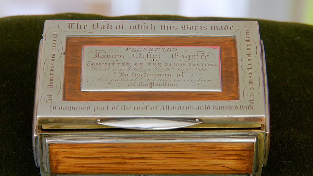 Gordon Foster admires a small wooden box made in honour of Scotland’s national poet, Robert Burns.