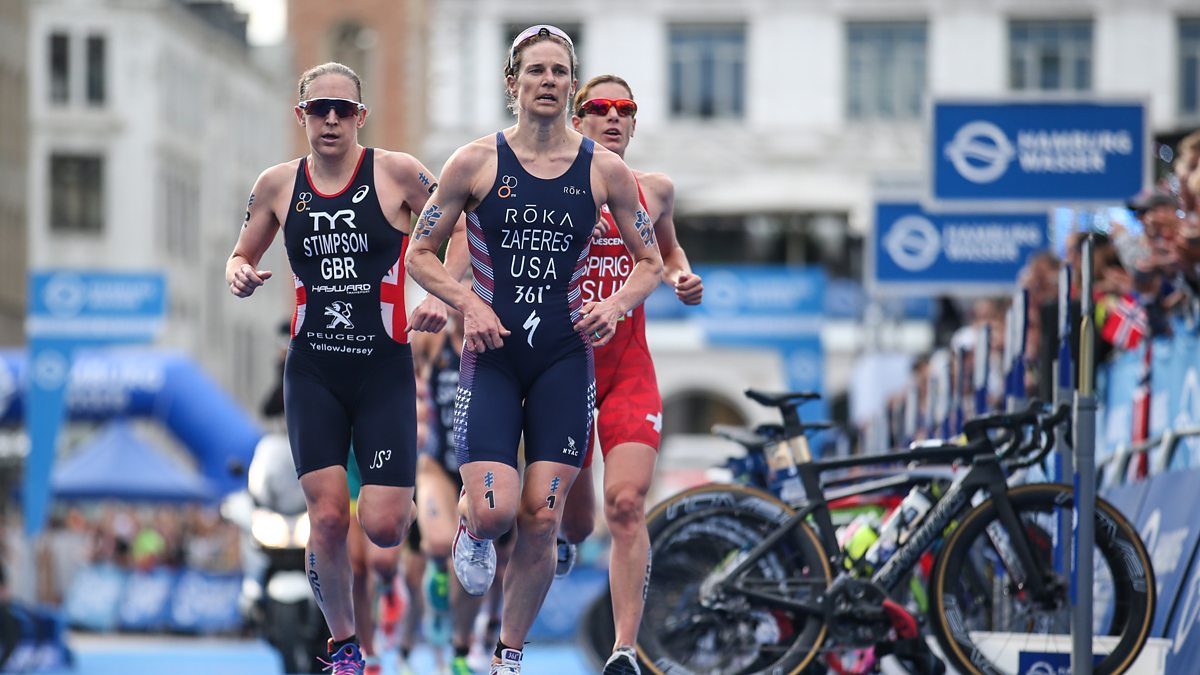 Watch coverage of the women's sprint triathlon from Hamburg.