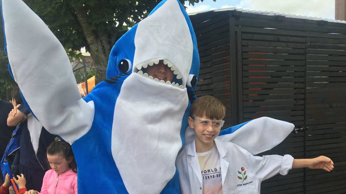 Anna Quigley talks sharks with science expert Roisin and her crew of young scientists.