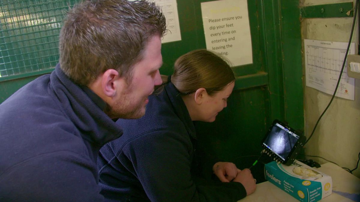 Longleat Keepers Caleb and Amy watch footage capturing the amazing moment one of their cheetahs gives birth to two cubs.