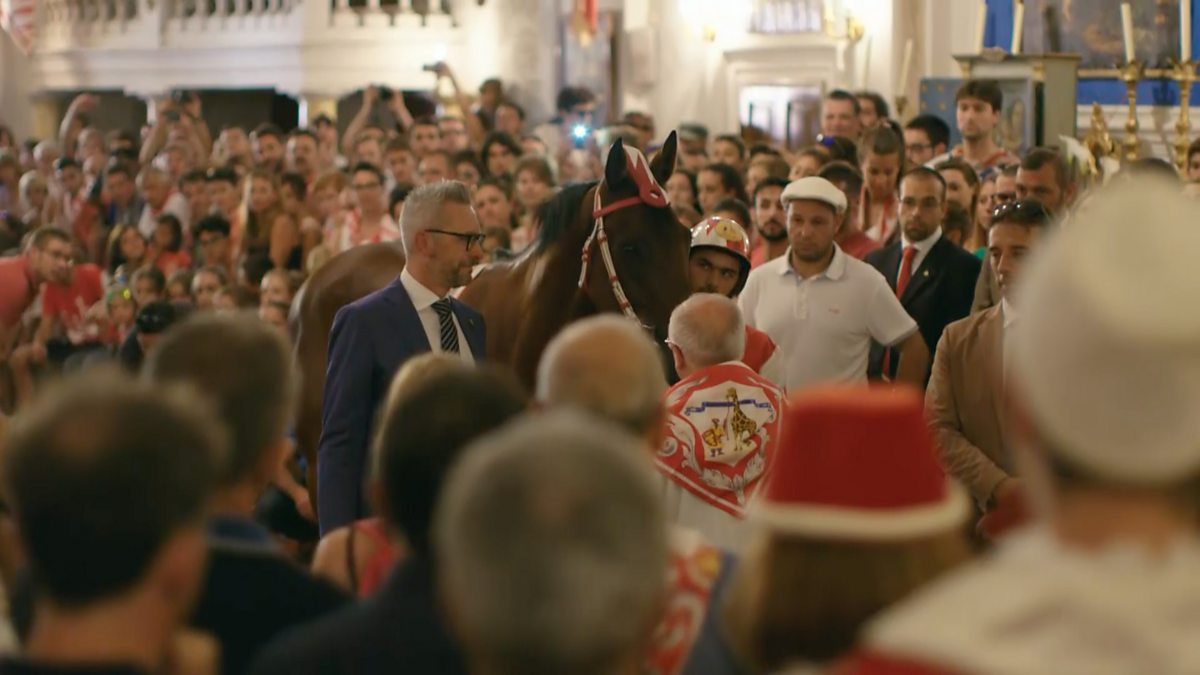 In Siena, each district blesses their horse in church for victory in the Palio, a unique, bareback horserace, which whips up huge passion to settle ancient city rivalries.