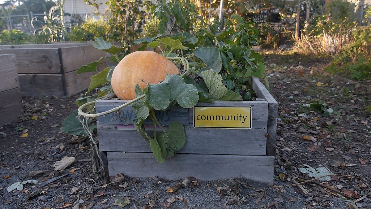 Image: Pumpkin in growing in the community garden. Credit: BBC