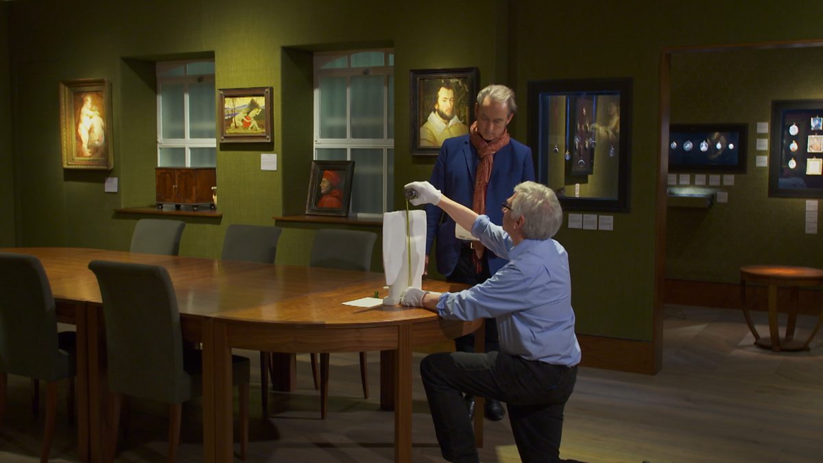 Philip and sculpture expert, Derek Pullen, examine the potential Giacometti sculpture hoping to find some clues to its origins.