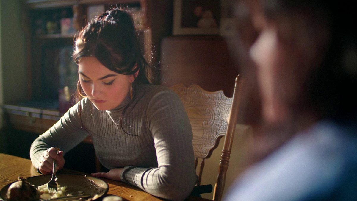 Over dinner, Kat explains to daughter Kaitlyn the reasons why they have to move to a different flat.